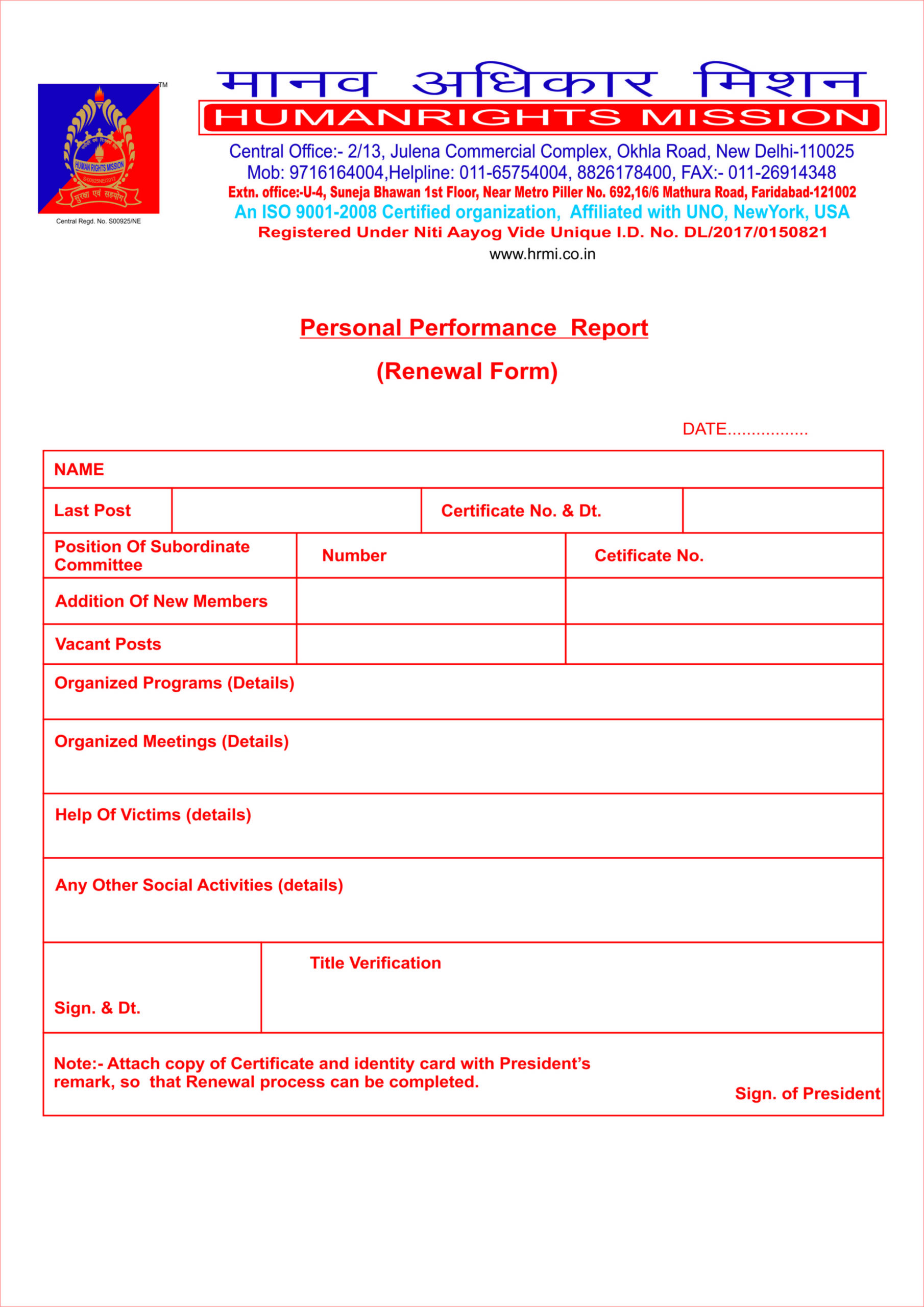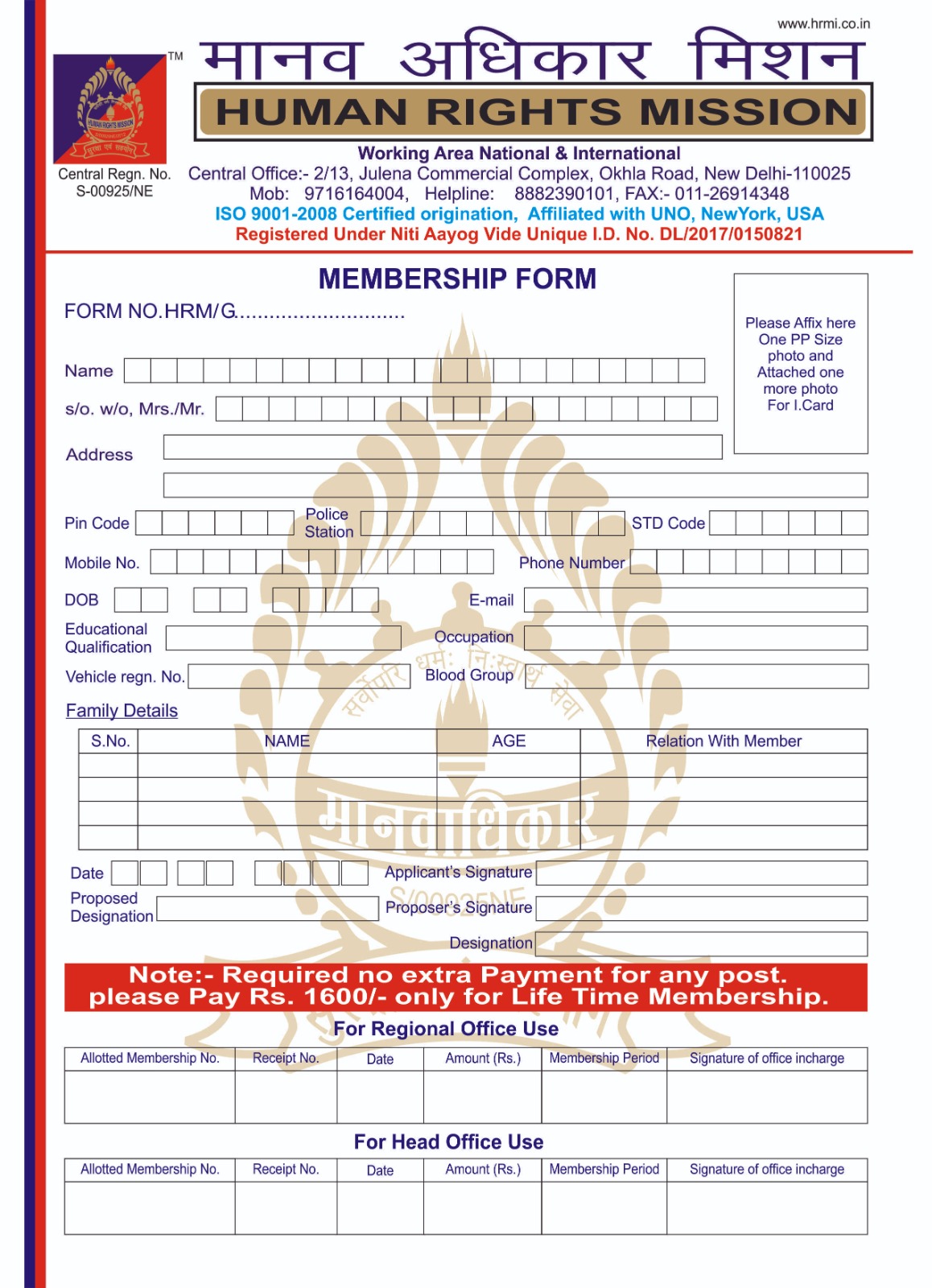 We hereby request to the public in general to come forward to join “Human Rights Mission (Regd.)” to strengthen each other to fight against the corruption Devil and help each other to make the progressive society” and prosperous & Developed nation.